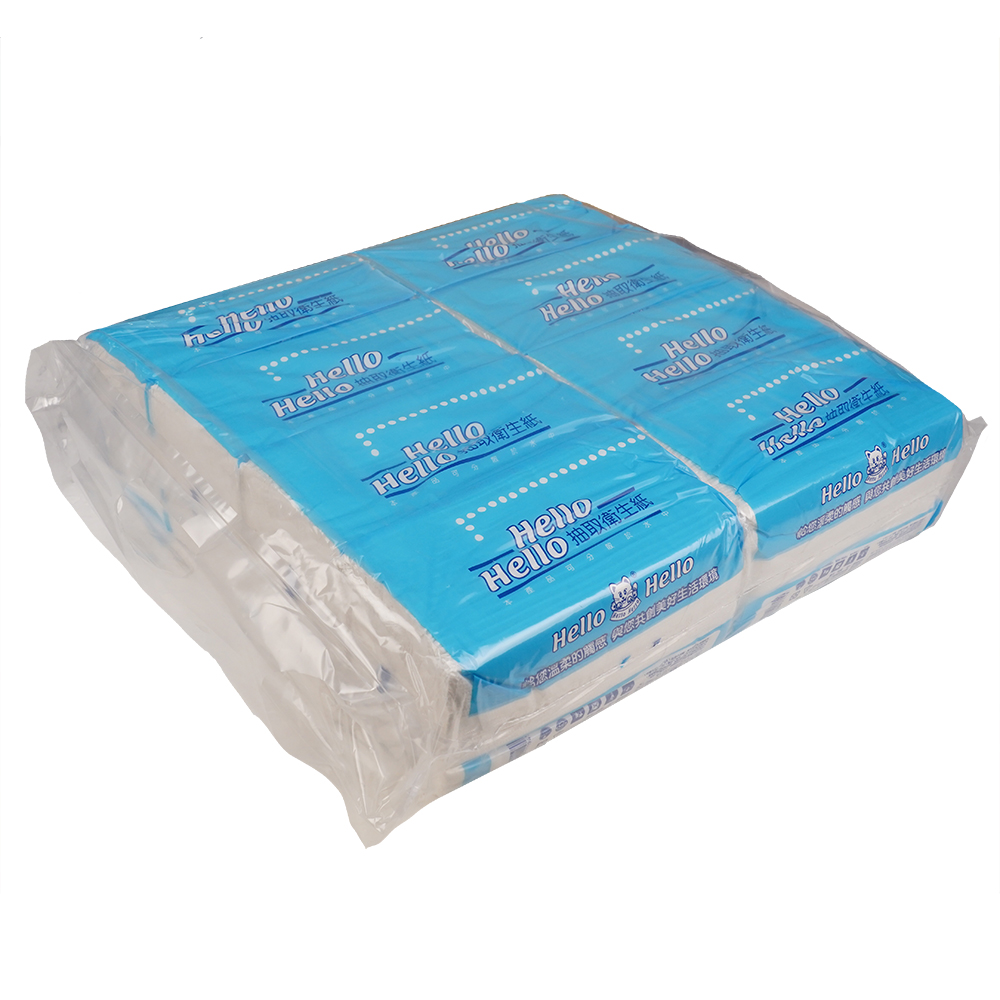 Hello抽取式衛生紙採用100%紙漿製作,觸感柔軟蓬鬆,適合日常使用。無添加香精、香料,為敏感肌膚提供貼心呵護。紙張經400度高溫瞬間殺菌乾燥,確保使用安全衛生,每袋內含8包,經濟實惠,是家庭及商業場所的理想選擇。