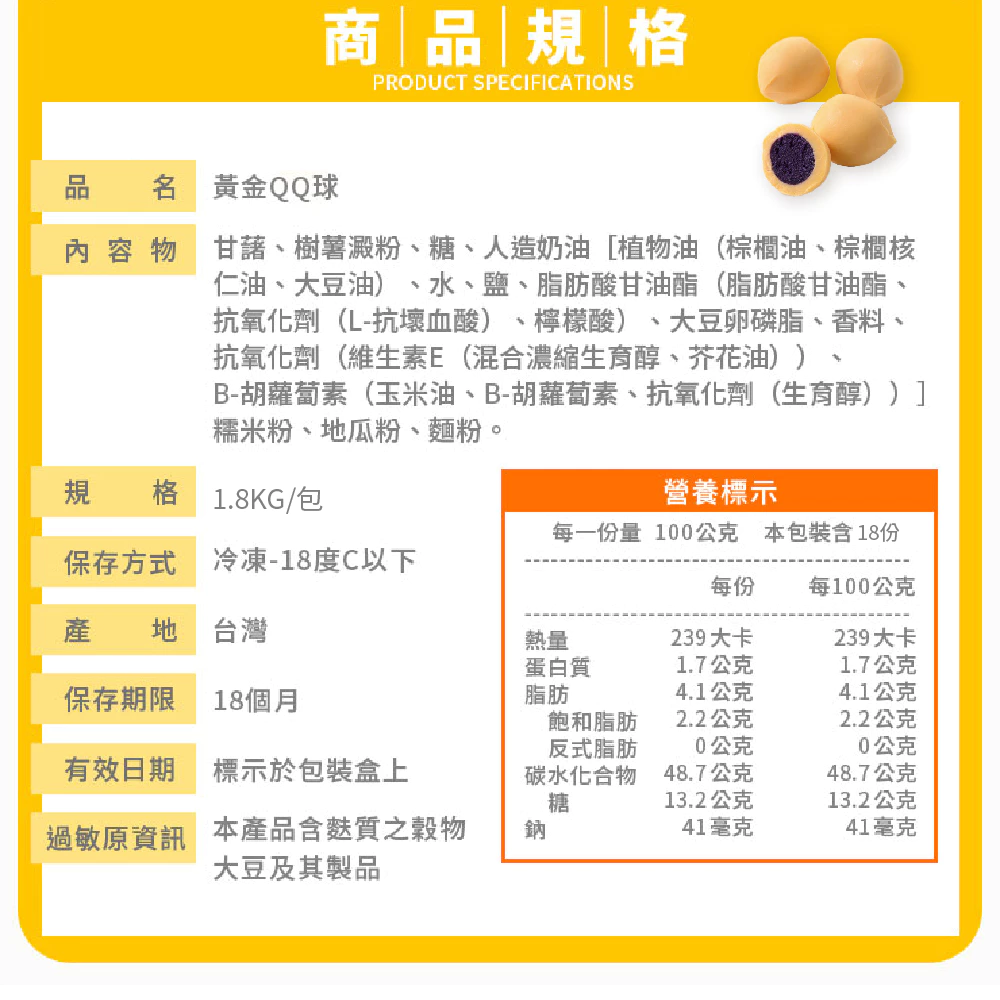 【營業包】瓜瓜園 黃金QQ球1.8kg/包(紫地瓜餡)